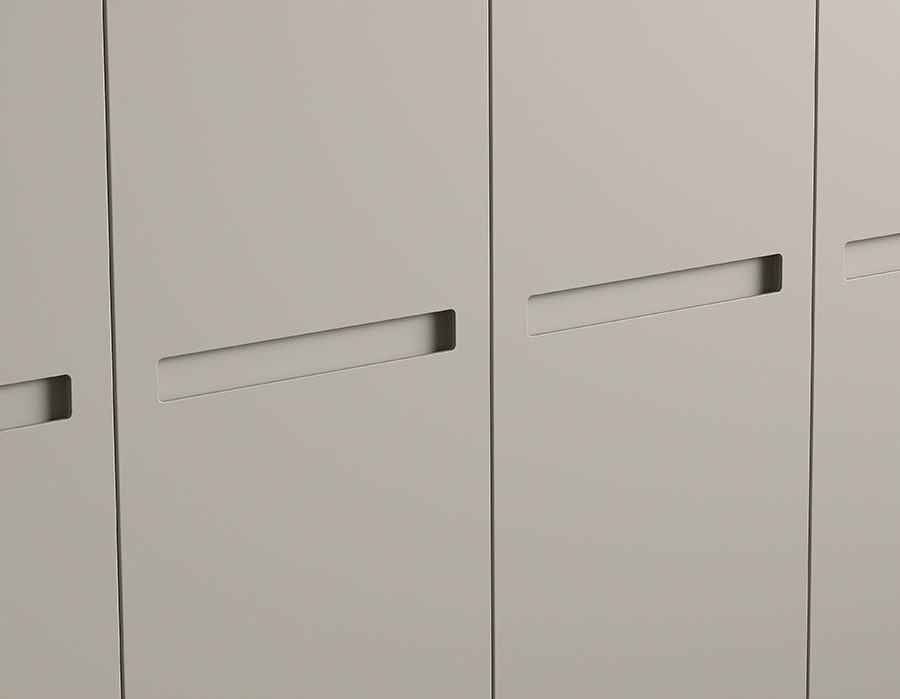 Chez Midi, nous créons votre armoire Ecco avec des portes battantes sur mesure, avec d'innombrables combinaisons, poignées, matériaux et finitions dans les structures et les panneaux.