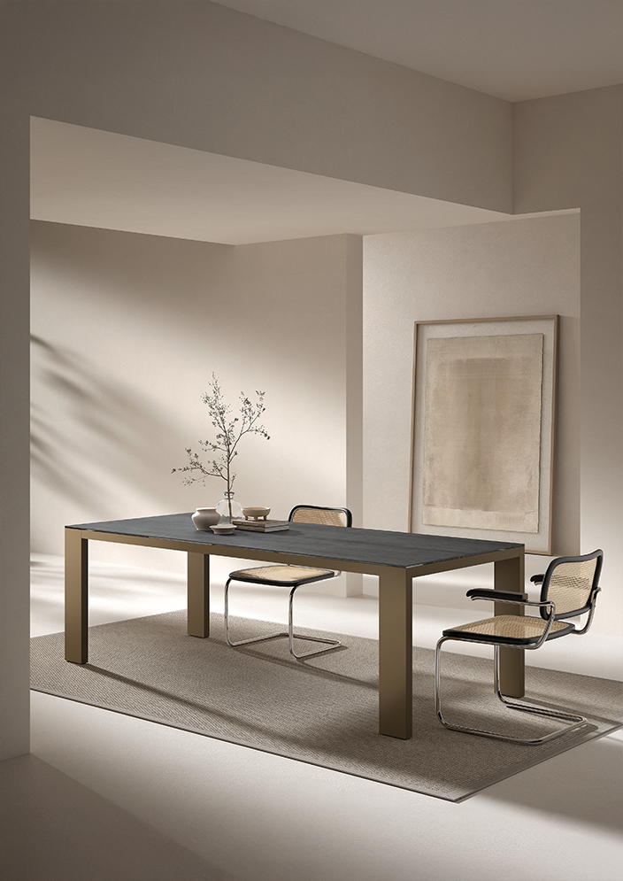 Chez Midi, nous créons votre table Armonía sur mesure, avec d'innombrables combinaisons, matériaux et finitions dans les structures et les enveloppes.